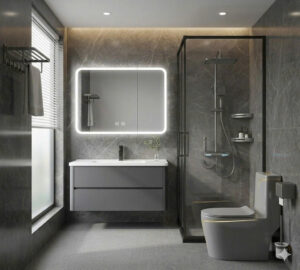 2. Tủ gương LED tích hợp sấy – Nhôm tổ ong chống nước
