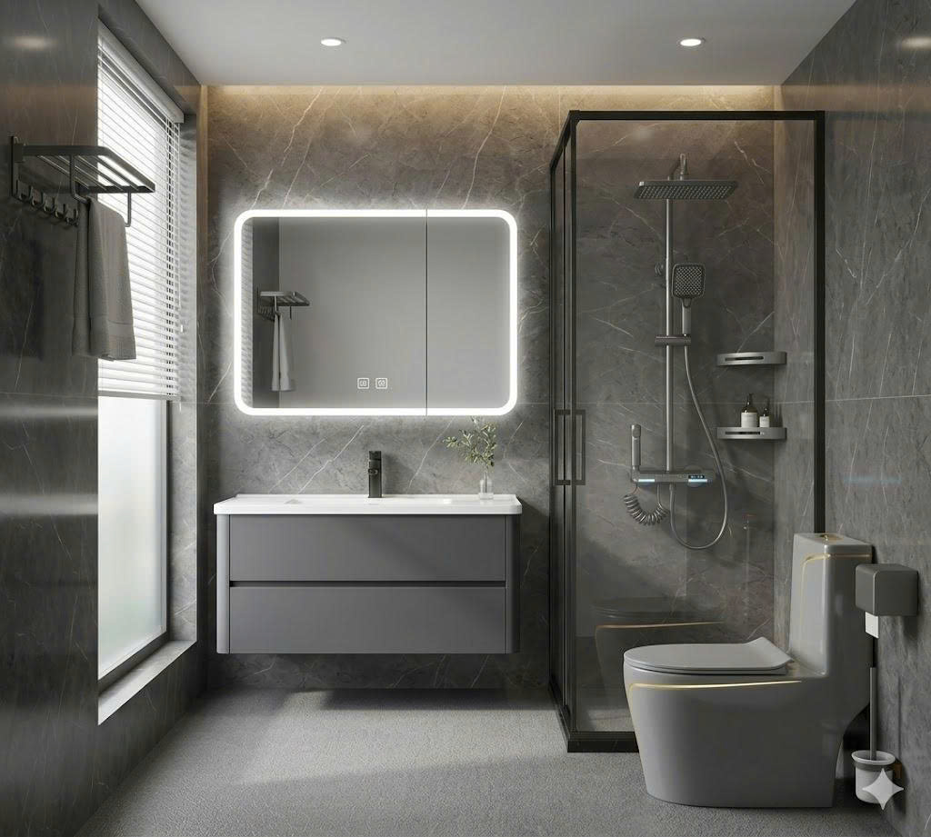 Combo nhà tắm AQUAML+ CC06 màu xám là sự kết hợp hoàn hảo giữa thiết kế thẩm mỹ và công nghệ hiện đại. Không chỉ mang lại vẻ đẹp sang trọng cho không gian, sản phẩm còn đảm bảo độ bền và tiện nghi tối đa trong quá trình sử dụng.