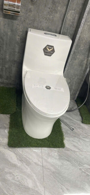 Bồn cầu thiết kế liền khối nguyên khối, không khe hở giúp hạn chế bám bẩn và dễ dàng vệ sinh. Công nghệ xả xoáy không viền (rimless) tạo dòng nước mạnh, cuốn trôi mọi chất bẩn mà vẫn tiết kiệm nước.