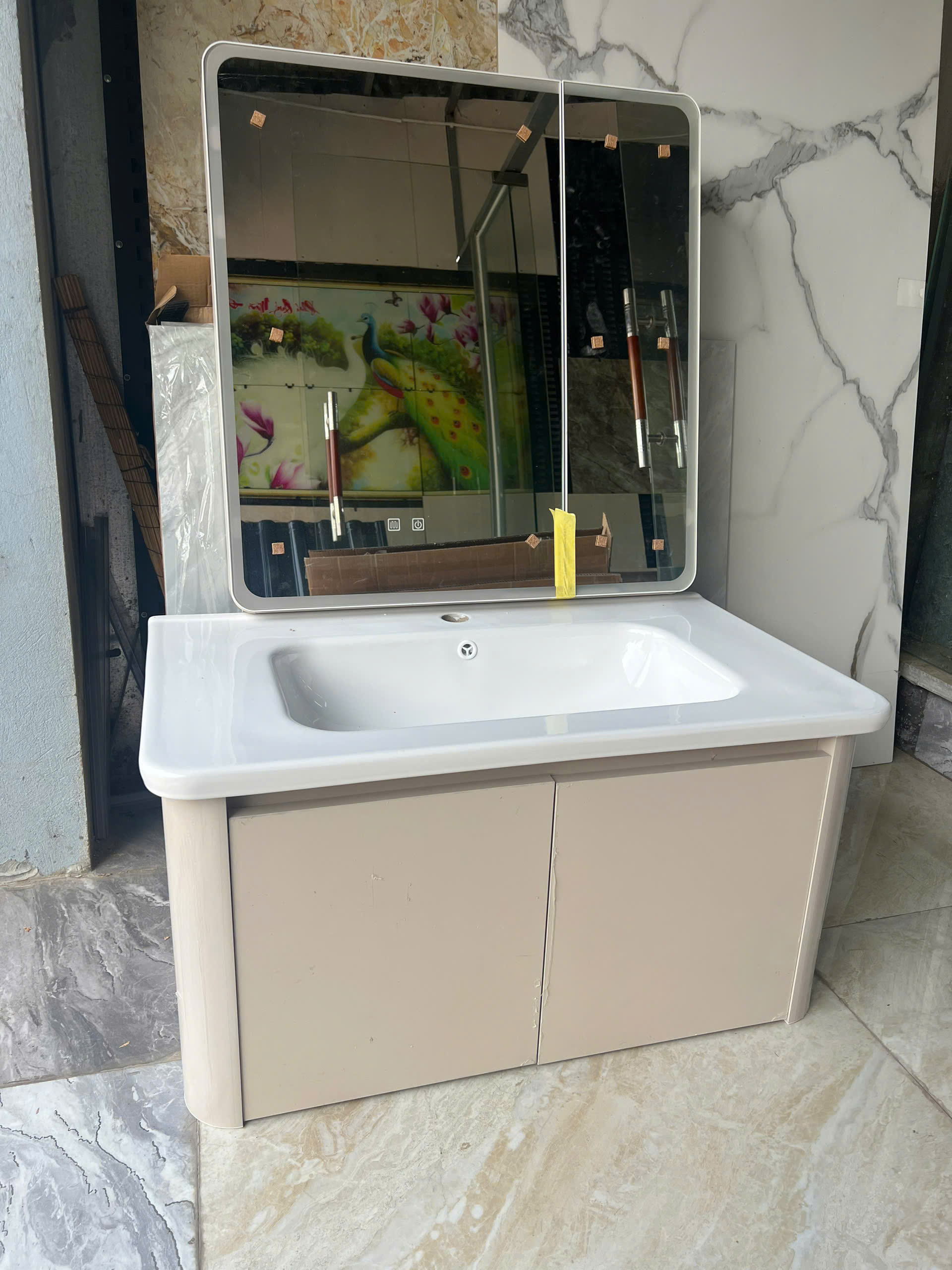 Bộ tủ lavabo được làm từ nhôm tổ ong cao cấp, có khả năng chống nước, chống mối mọt vượt trội so với gỗ truyền thống.